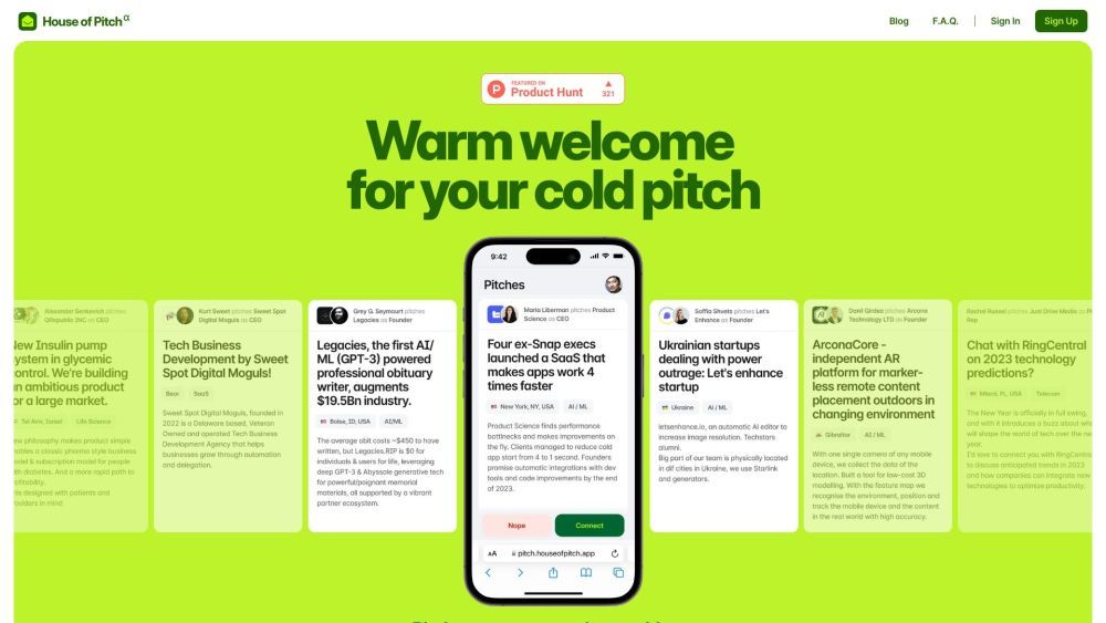 House of Pitch is a platform that allows users to confidently pitch their news, services, or ideas to journalists and investors. It provides a smooth and confident outreach experience to an interested audience.