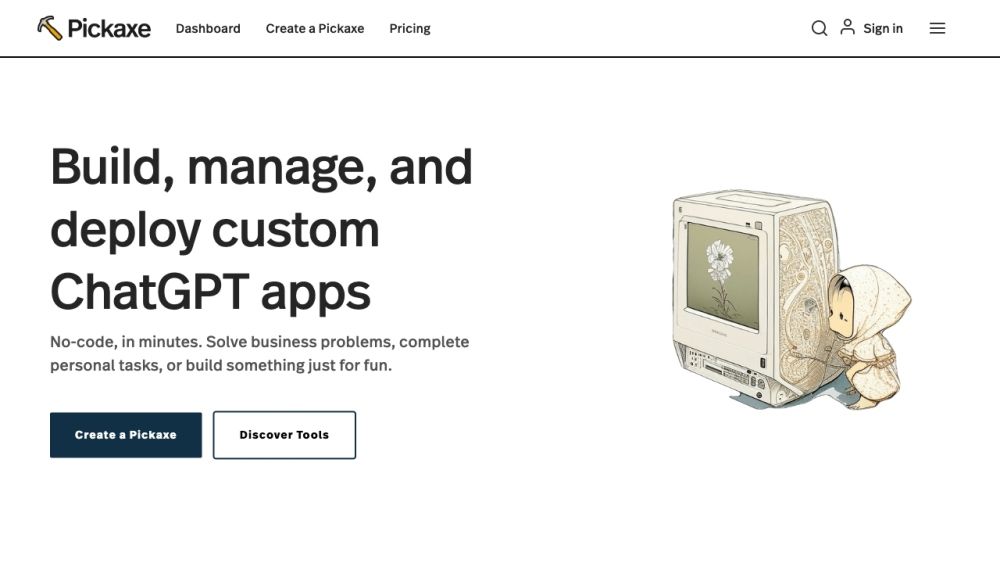 Pickaxe is a no-code platform that allows prompt engineers to build, share, and manage AI apps across their organization. It bridges the gap between generative AI prompts and the people who use them, empowering non-technical users to integrate AI prompts into their websites and internal dashboards.
