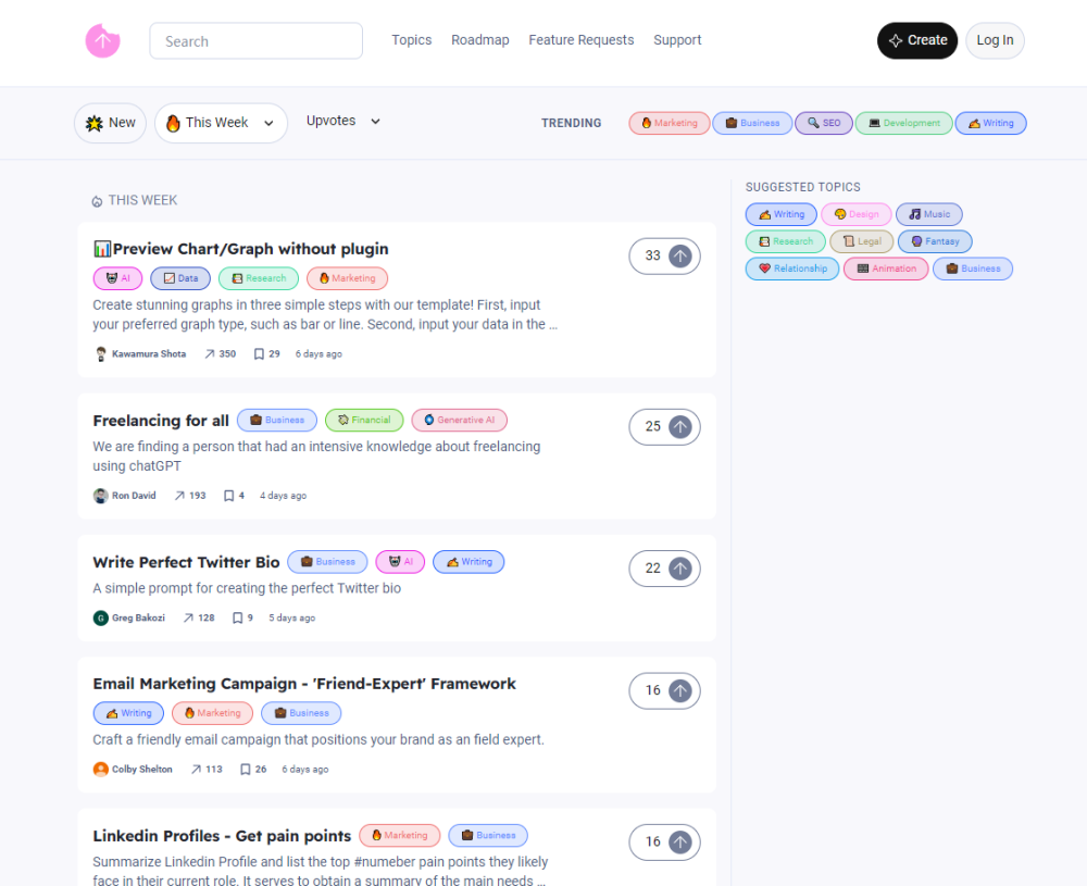 ✨ 2. Upvoting System: Prompts can be upvoted to showcase their popularity and quality.